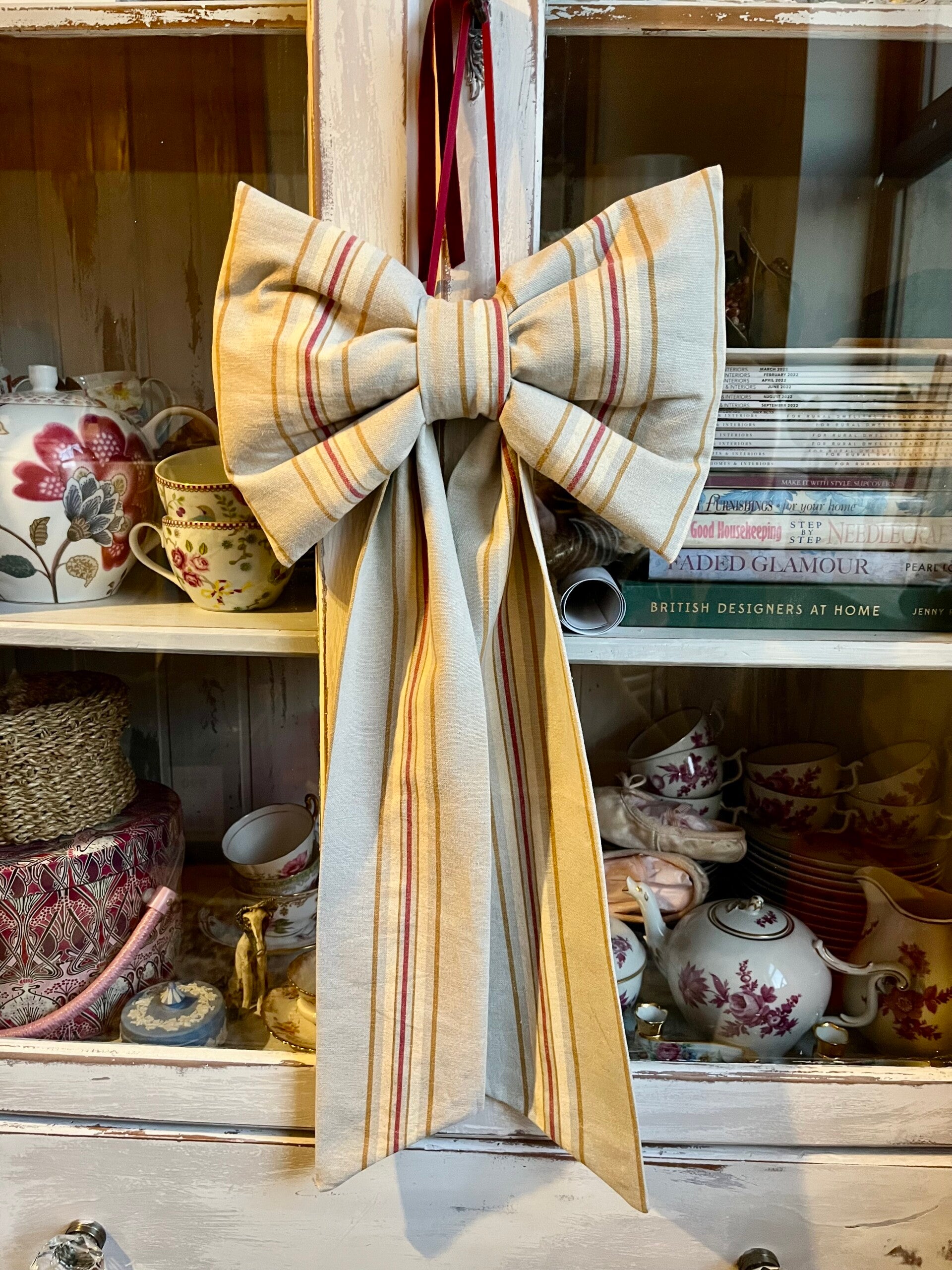 Large handmade bow in striped linen fabric,lovely accessory for the home and can be styled anywhere